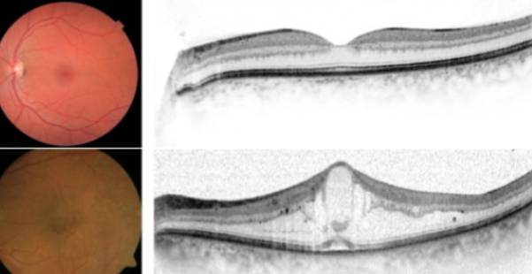 • Inchaço (edema) na retina, principalmente na parte central chamada mácula