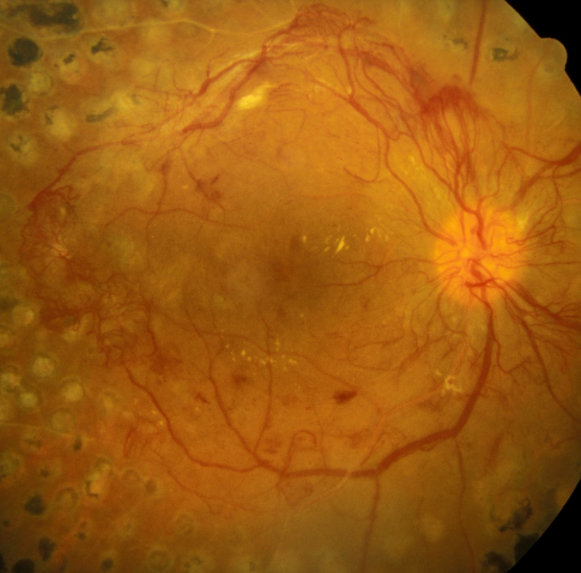 Isso acontece porque os neovasos vão proliferando e fechando (ou fibroso/cicatrizando) formando uma membrana grossa, que chamamos de tecido fibrovascular, pois é formado de fibrose (cicatriz) e vasos ativos.